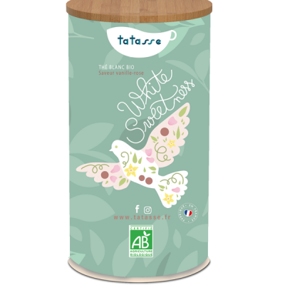 Afin de vous proposer un thé d’une douceur inégalée, Tatasse a fait appel au bienfaisant White Sweetness. Composé du très pur thé blanc Pai Mu Tan, du léger thé vert Chun Mee et des jeunes bourgeons du thé blanc Mao Feng, le White Sweetness forme le choix idéal pour un long moment de détente. Les notes de fond de ces trois thés vous délivreront un goût tout en douceur et continuité, sans agresser le palais par l’amertume de leurs tanins. Disposant naturellement d’une saveur légèrement sucrée, les thés blancs du White Sweetness sont soutenus par le raisin, la vanille bourbon et leurs goûts tout en rondeur. P.S : Parfait pour piquer un petit somme !